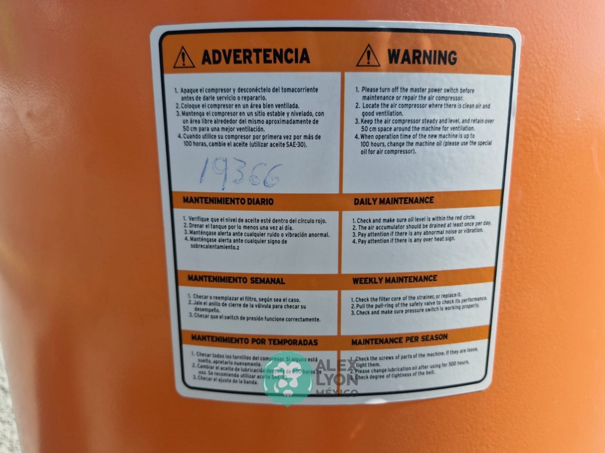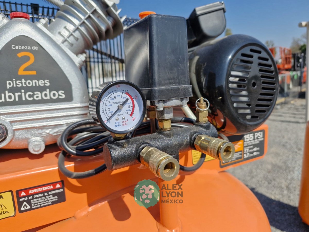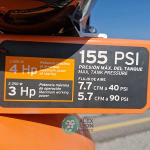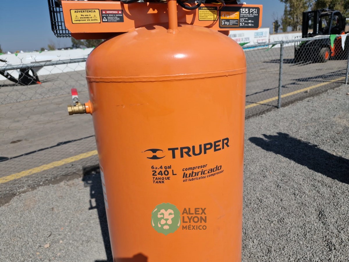 PRESION MAXIMA 155 PSI. TANQUE DE 240 LTS. / 63.4 GAL. 220 V. DE BANDA, MOTOR ELECTRICO CON BOBINAS DE COBRE, VALVULA DE DRENADO, 2 SALIDAS DE 1/4″ PARA MANGUERAS DE 1/4″, 3/8″ Y 1/2″, UNA SALIDA ROSCADA DE 3/4″ PARA MANGUERAS DE 3/4″, PROTECTOR DE SOBRECORRIENTE. (NUEVO)
