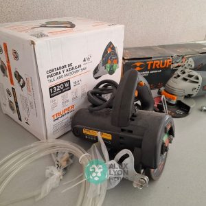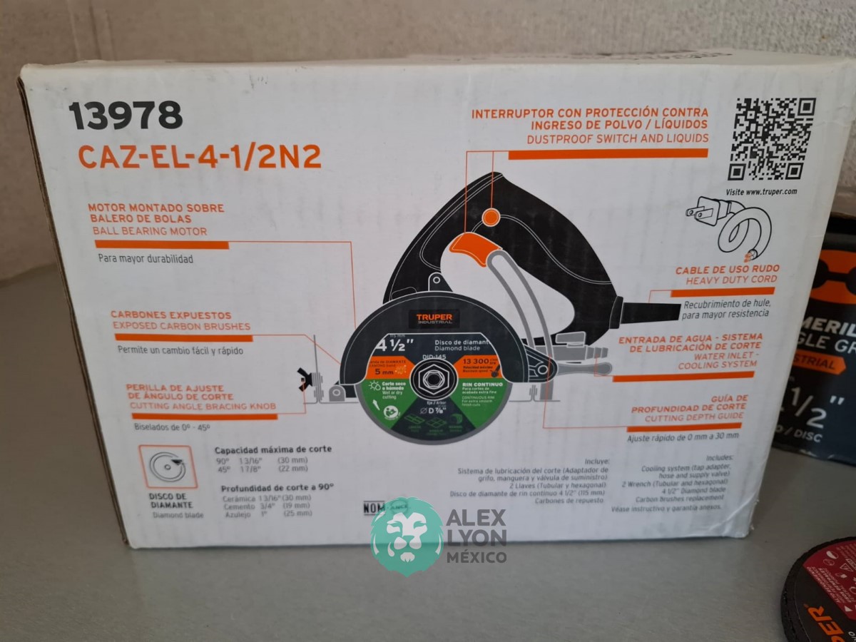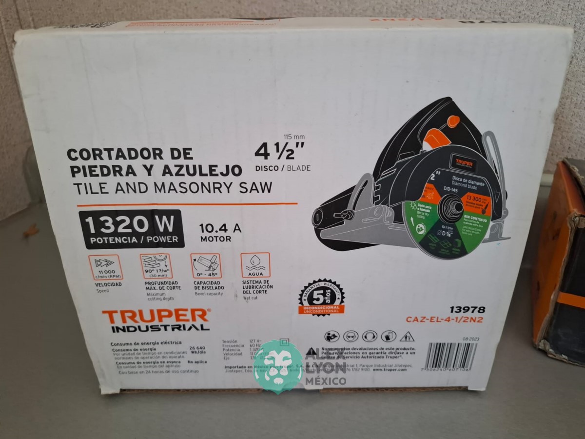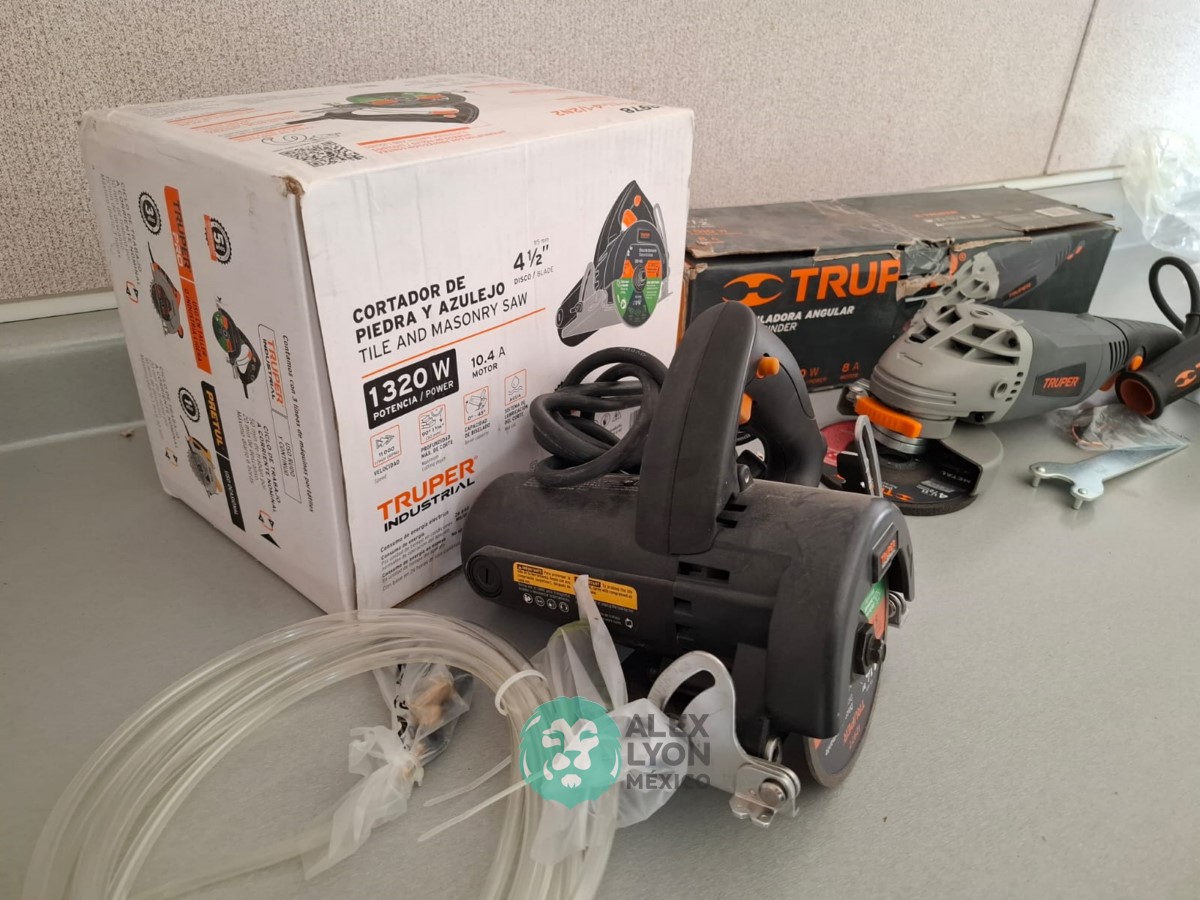 QUE INCLUYE (1) CORTADOR DE PIEDRA Y AZULEJO, MODELO CAZ-EL-4-1/2N2, S/N: 13978, INDUSTRIAL, PROFUNDIDAD MAXIMA DE CORTE 30 MM. CAPACIDAD DE BISELADO DE 0 A 45 GRADOS, SISTEMA DE LUBRICACION DEL CORTE, MOTOR DE 10.4 AMPS. POTENCIA DE 1320 WATTS. VELOCIDAD 11000 RPM. (INCLUYE DISCO DE DIAMANTE DE RIN CONTINUO) Y (1) ESMERILADORA ANGULAR, MODELO ESMA-4-1/2N, SERIE: 16441, ELECTRICA, PARA DISCOS DE 4 1/2″, MOTOR DE 8 AMPS. POTENCIA DE 1010 WATTS. MANGO AUXILIAR DE 3 POSICIONES, GUARDA DE AJUSTE RAPIDO. (NUEVO)