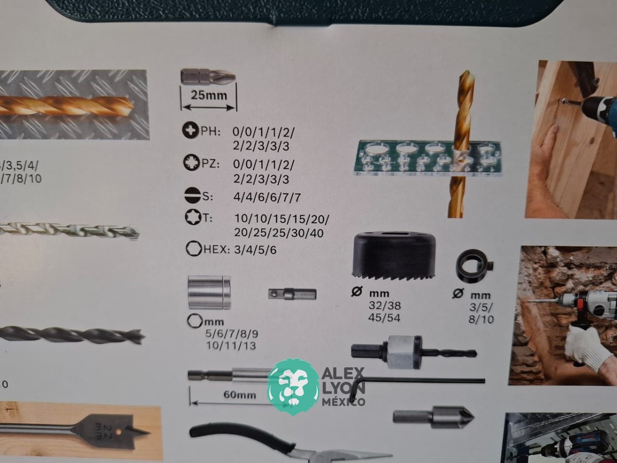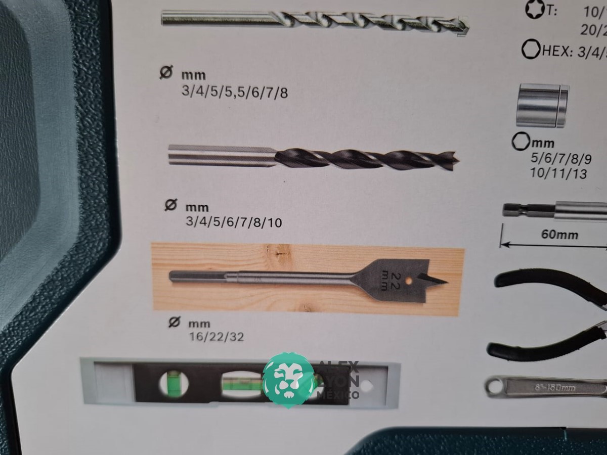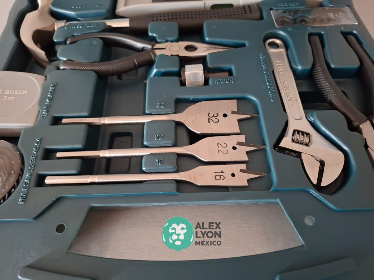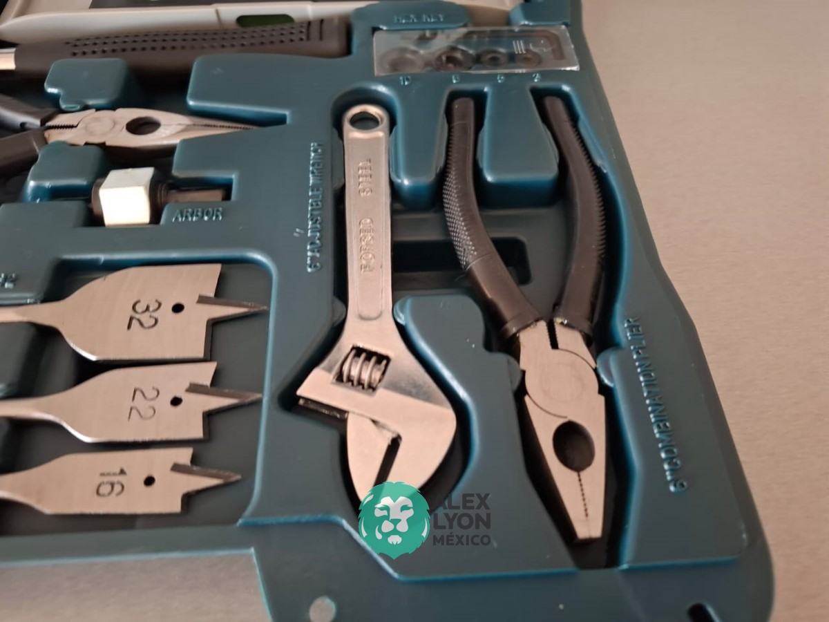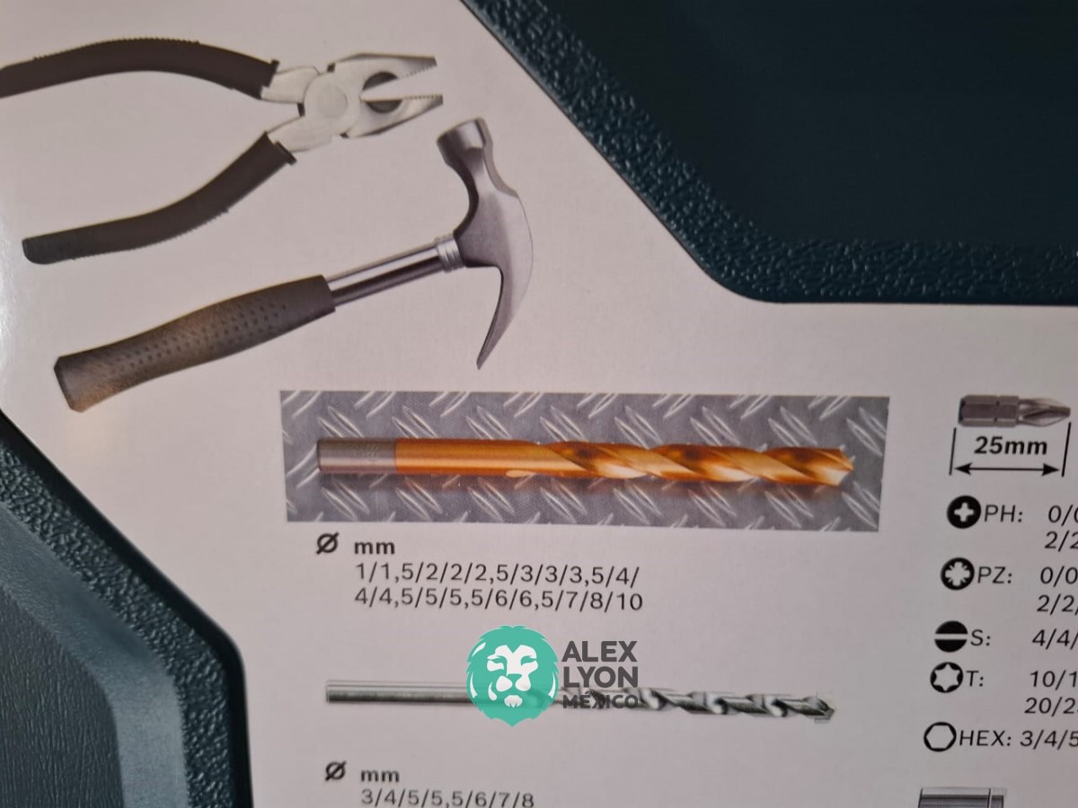 CON (103) PIEZAS, EN LAS CUALES INCLUYE BROCAS PARA USO EN TALADROS, PARA MADERA, METAL Y CONCRETO DE DIFERENTES MEDIDAS, (1) MARTILLO, (1) PINZA, (1) NIVEL, (1) CINTA METRICA, ESTUCHE DE PLASTICO, ENTRE OTRAS. (NUEVO)