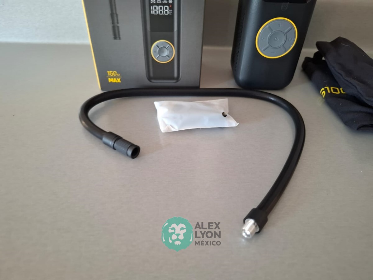 CAPACIDAD 150 PSI. ELECTRICO, PUERTO USB, BATERIA DE 2600 MAH. INCLUYE MANGUERA PARA AIRE DE USO RUDO QUE SOPORTA TIRONES Y DOBLECES, ADAPTADOR DE VALVULA Y BOLSA DE ALMACENAMIENTO. (NUEVO)