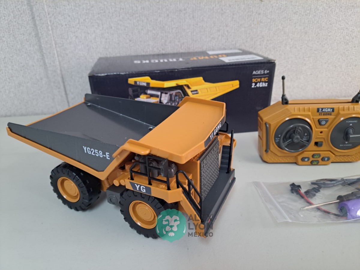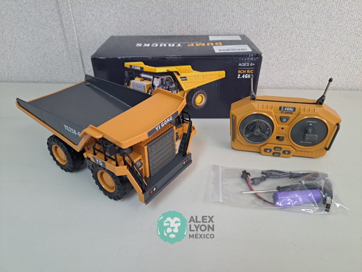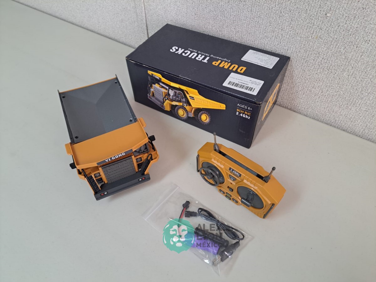 (VIDEO) CAMION FUERA DE CARRETERA, RADIO CONTROL DE 9 CANALES, CONSTRUIDO EN PLASTICO, MOVIMIENTOS MULTIDIRECCIONALES DE AVANCE Y RETROCESO, MOVIMIENTOS DE LA CAJA DE VOLTEO, LUCES Y SONIDOS, BATERIA RECARGABLE USB, CONTROL REMOTO INALAMBRICO CON BATERIAS. (NUEVO)