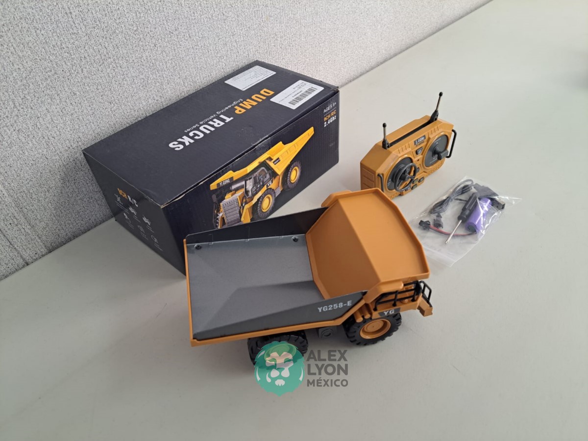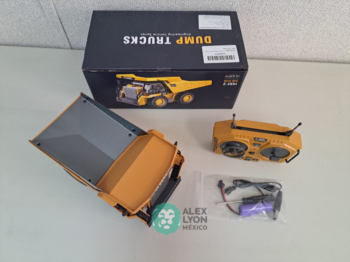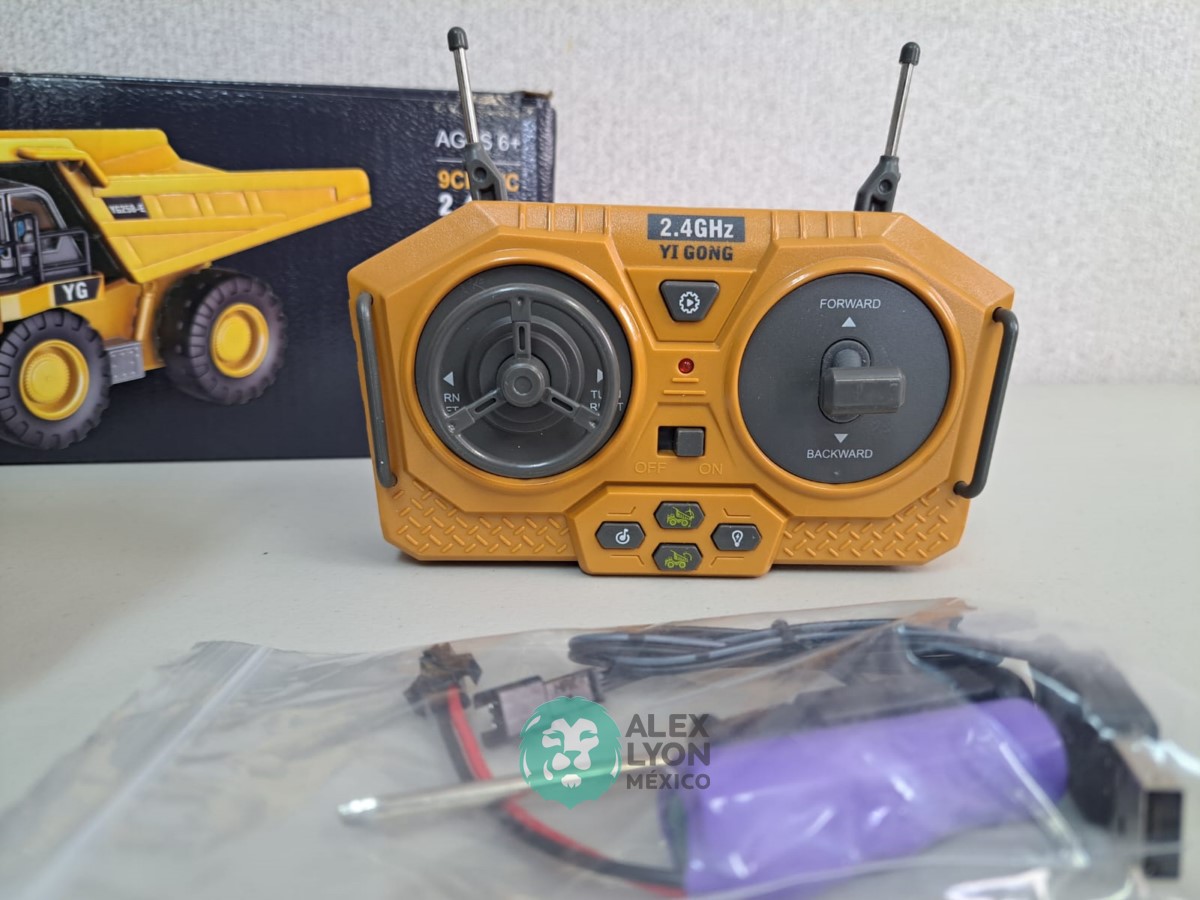 (VIDEO) CAMION FUERA DE CARRETERA, RADIO CONTROL DE 9 CANALES, CONSTRUIDO EN PLASTICO, MOVIMIENTOS MULTIDIRECCIONALES DE AVANCE Y RETROCESO, MOVIMIENTOS DE LA CAJA DE VOLTEO, LUCES Y SONIDOS, BATERIA RECARGABLE USB, CONTROL REMOTO INALAMBRICO CON BATERIAS. (NUEVO)