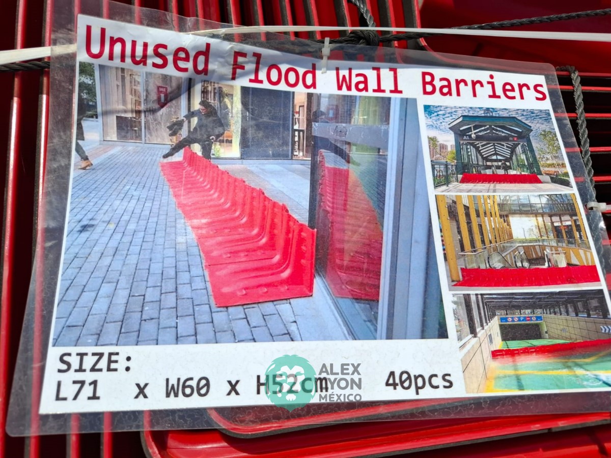 QUE INCLUYE (40) BARRERAS CONTRA INUNDACION, DE 71 CM. DE LARGO, 6 CM. DE ANCHO, 52 CM DE ALTO. (NUEVAS)