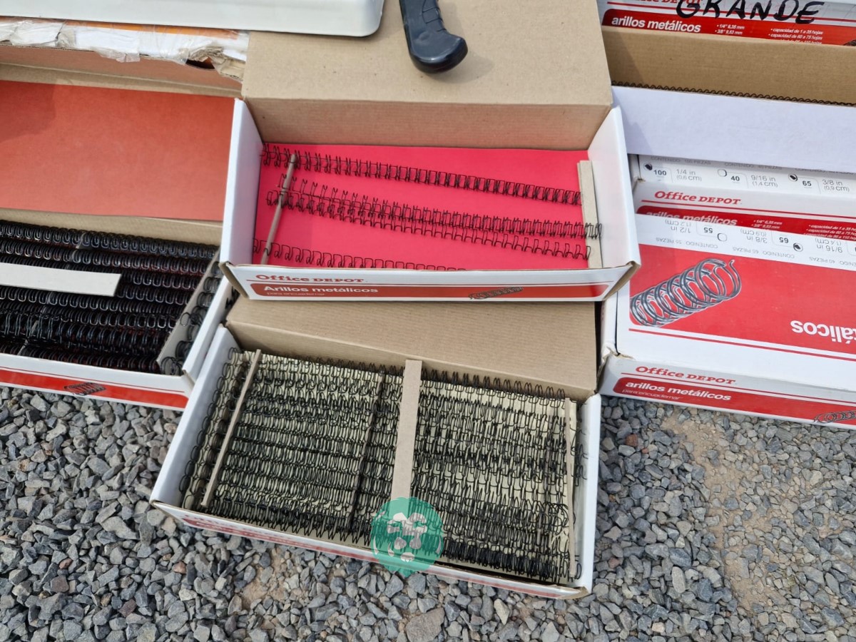 QUE INCLUYE (5) ENGARGOLADORAS Y VARIAS CAJAS CON ARILLOS DE DIFERENTES MEDIDAS PARA ENGARGOLAR.
