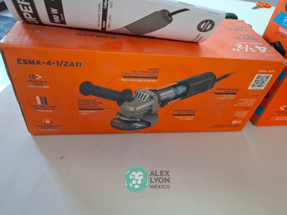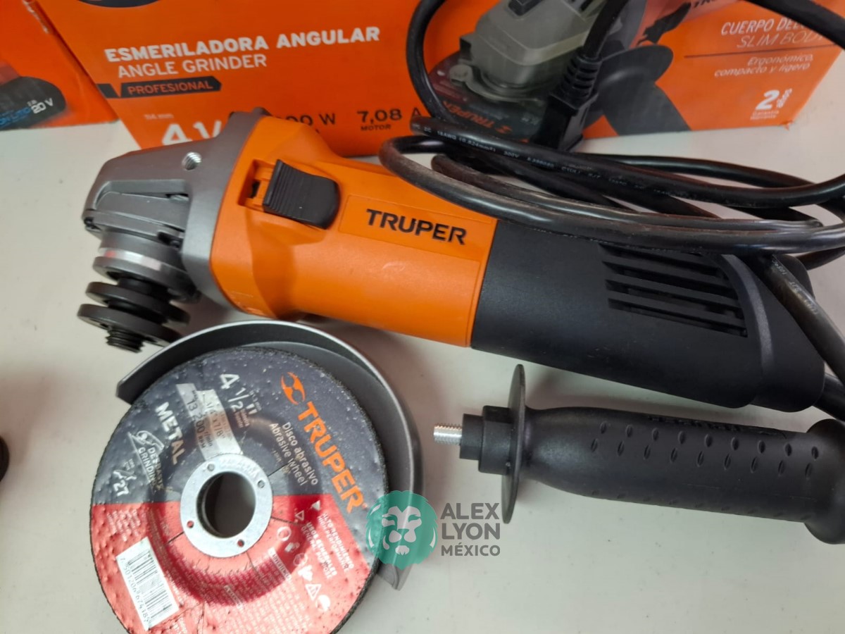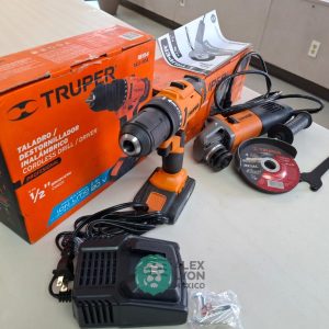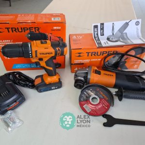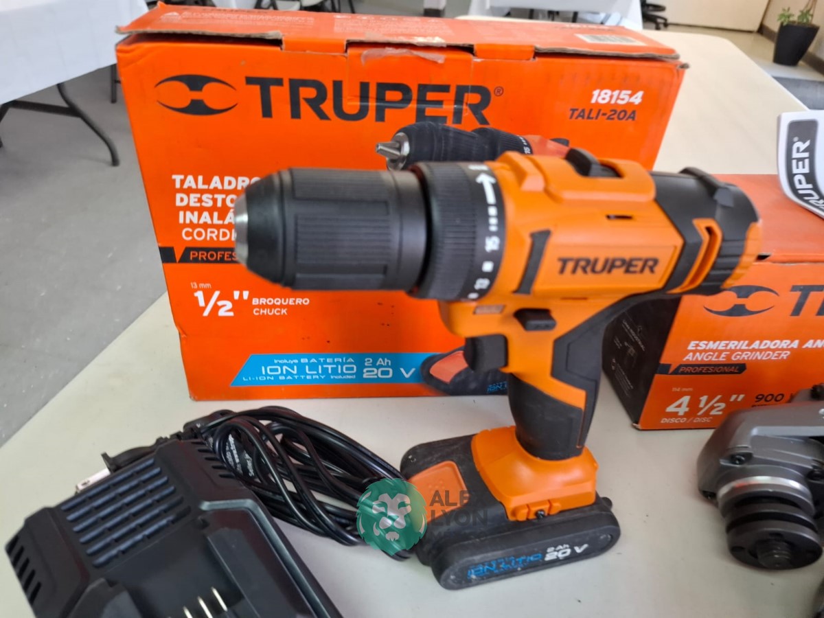 QUE INCLUYE (1) TALADRO DESTORNILLADOR INALAMBRICO, MODELO TALI-20A, S/N: 18154, BROQUERO DE 1/2″, BROQUERO DE CAMBIO RAPIDO, MAXIMO TORQUE, DOBLE ENGRANAJE PARA 2 VELOCIDADES, CLIP PARA CINTURON, LUZ LED. (INCLUYE CARGADOR DE BATERIAS Y BATERIA ION-LITIO DE 20 VOLTS) Y (1) ESMERILADORA ANGULAR, MODELO ESMA-4-1/2A11, SERIE: 16715, PROFESIONAL, PARA DISCOS DE 4 1/2″, POTENCIA DE MOTOR 900 WATTS, MOTOR DE 7.08 AMPS. VELOCIDAD 11000 RPM. CUERPO DELGADO Y ERGONOMICO, GUARDA DE AJUSTE RAPIDO, MANGO DE 3 POSICIONES. (INCLUYE DISCO DE 4 1/2″, GUARDA DE PROTECCION, MANGO AUXILIAR Y LLAVE DE DOS PUNTAS) (NUEVAS)