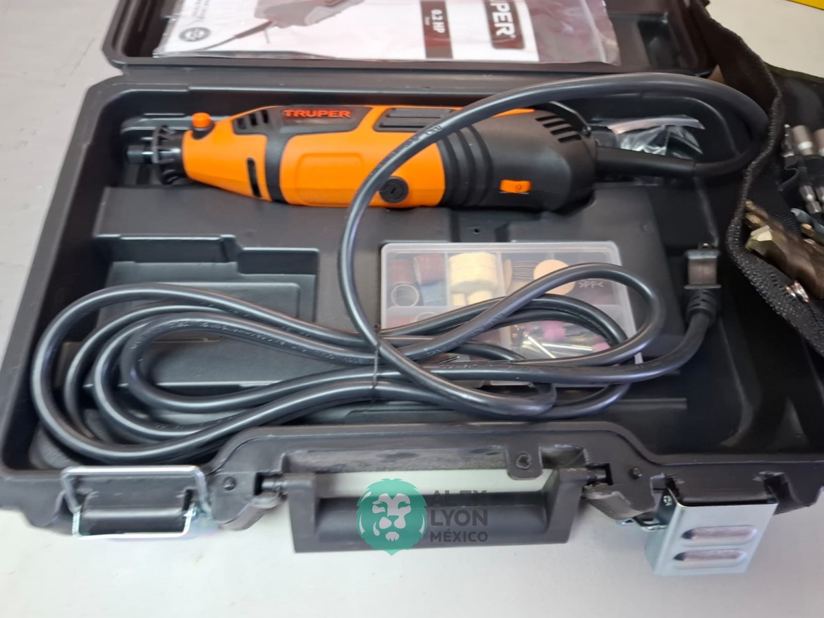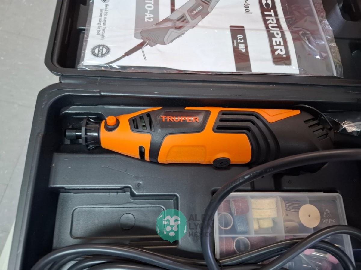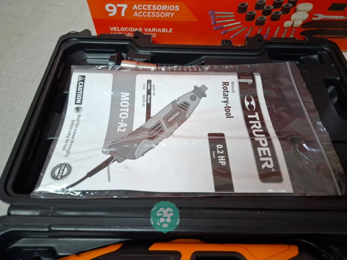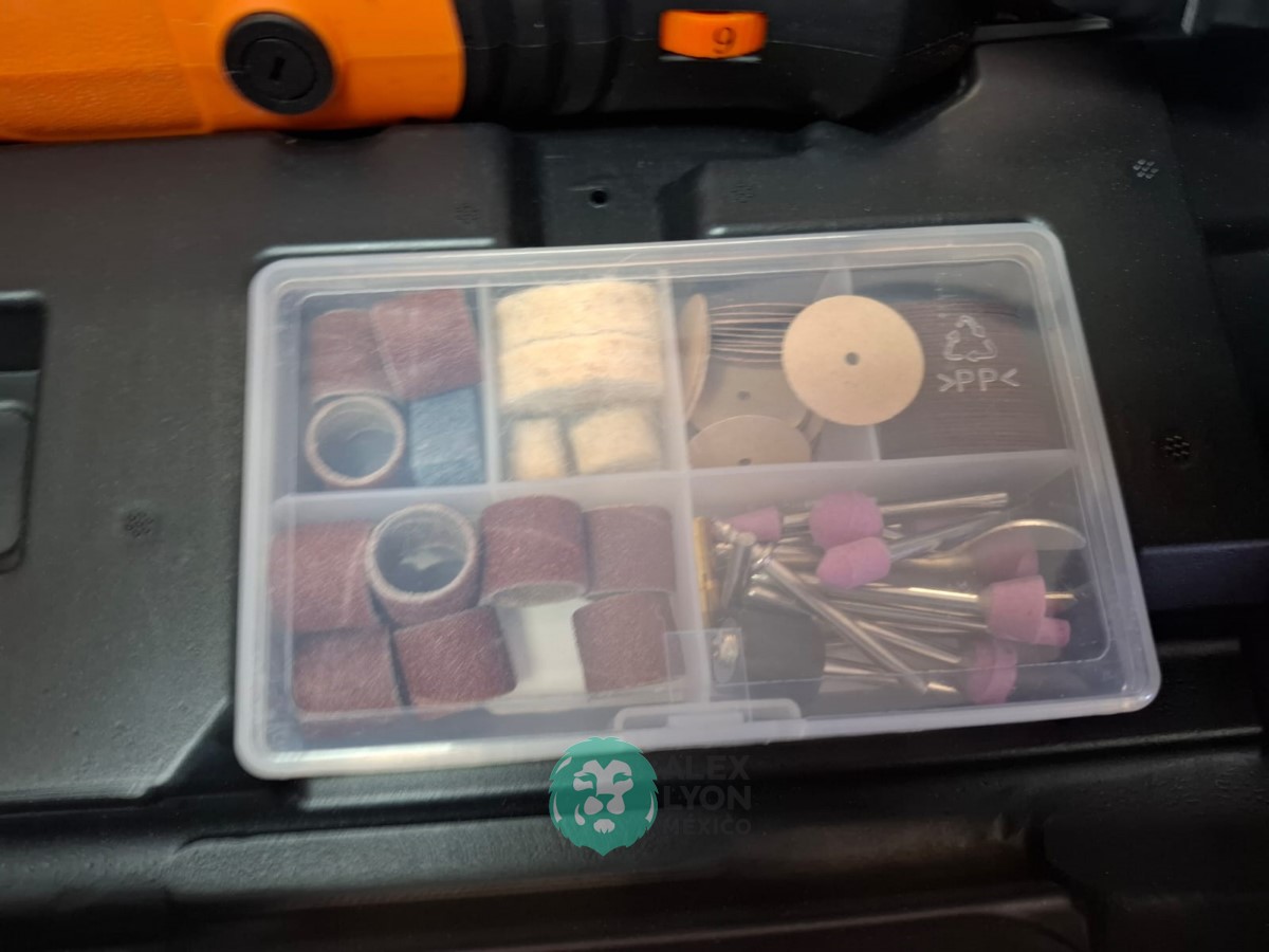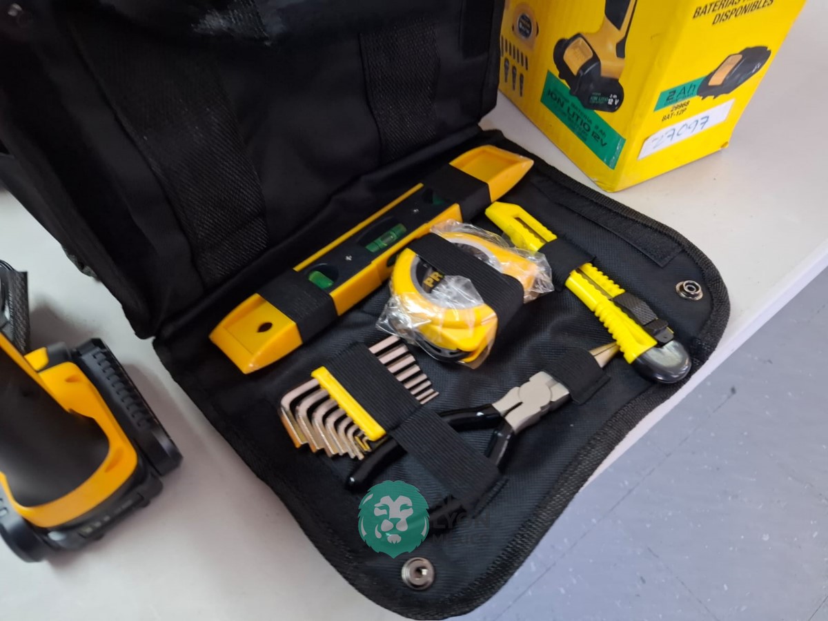 QUE INCLUYE (1) TALADRO DESTORNILLADOR MARCA PRETUL, MODELO TALI-12PK, S/N: 27097, INALAMBRICO, BROQUERO CON CAMBIO RAPIDO DE 3/8″, LUZ LED, BOTON DE CAMBIO DE DIRECCION, INDICADOR DE CARGA. (INCLUYE CARGADOR DE BATERIAS, BATERIA DE ION-LITIO DE 12 VOLTS. BROCAS, PUNTAS, PINZA, LLAVES ALLEN, NIVEL, FLEXOMETRO Y MALETA PORTAHERRAMIENTAS); Y (1) HERRAMIENTA ROTATIVA MODELO MOTO-A2, S/N: 17449, MOTOR DE 1.2 AMPS. POTENCIA DE 150 WATTS. CARBONES REEMPLAZABLES, BOQUILLA DE 3 MM. VELOCIDAD VARIABLE, CONTROL DE VELOCIDAD, BOTON DE BLOQUEO, USOS DE CORTADORA, ESMERILADORA, LIJADORA, PULIDORA Y GRABADORA, (INCLUYE 97 ACCESORIOS Y ESTUCHE) (NUEVAS)