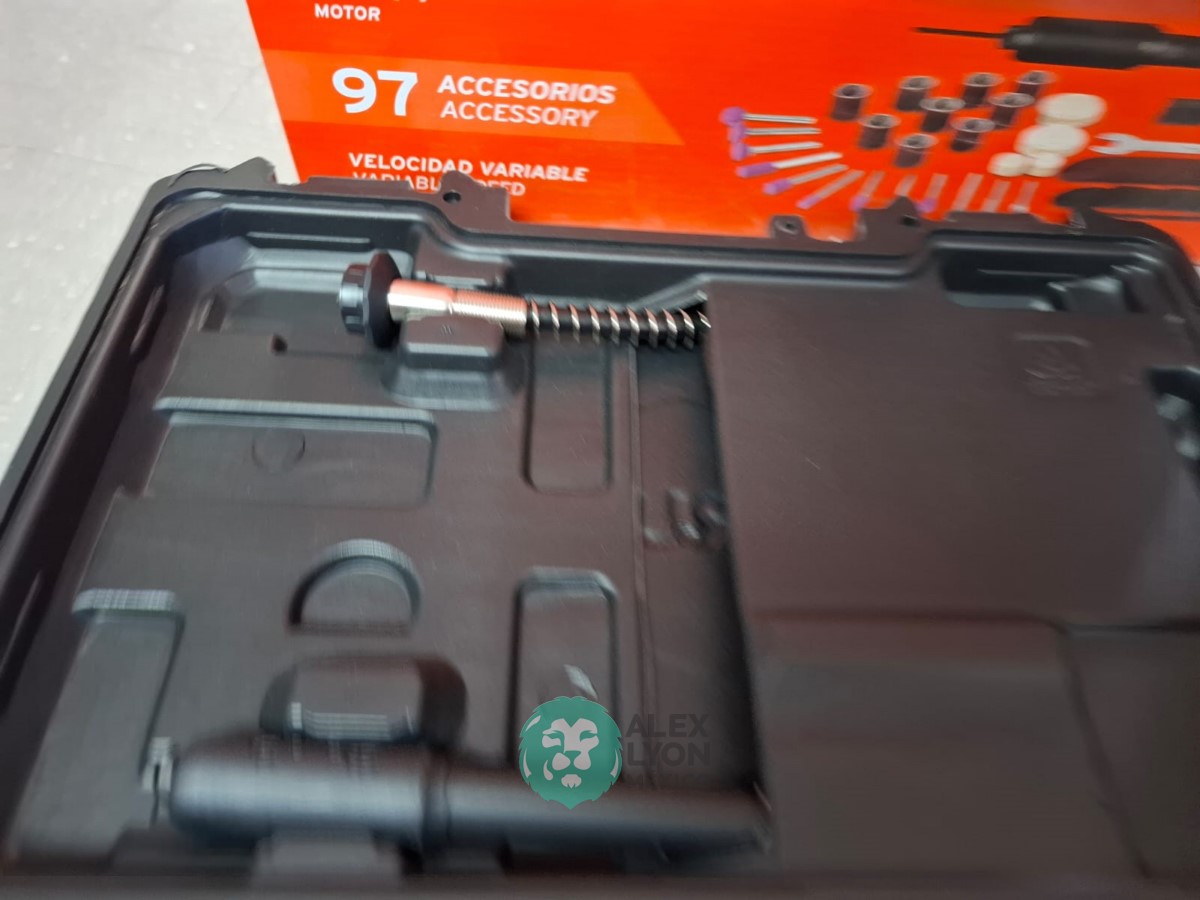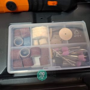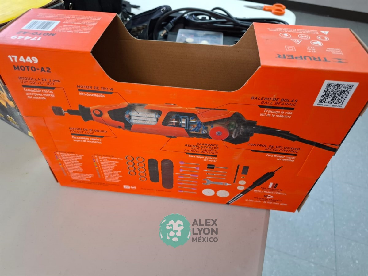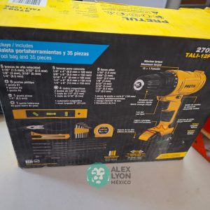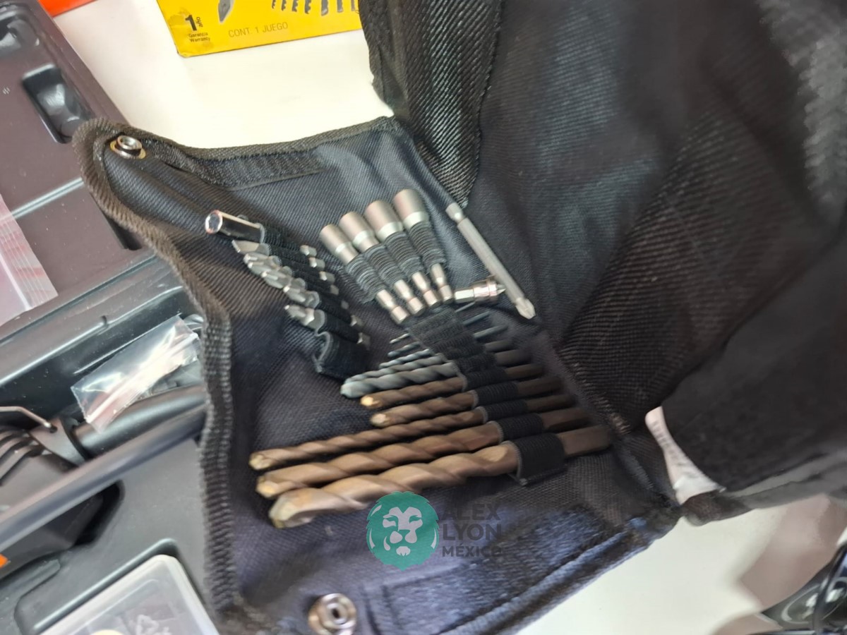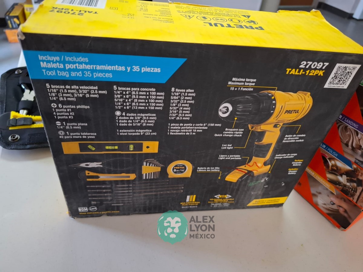 QUE INCLUYE (1) TALADRO DESTORNILLADOR MARCA PRETUL, MODELO TALI-12PK, S/N: 27097, INALAMBRICO, BROQUERO CON CAMBIO RAPIDO DE 3/8″, LUZ LED, BOTON DE CAMBIO DE DIRECCION, INDICADOR DE CARGA. (INCLUYE CARGADOR DE BATERIAS, BATERIA DE ION-LITIO DE 12 VOLTS. BROCAS, PUNTAS, PINZA, LLAVES ALLEN, NIVEL, FLEXOMETRO Y MALETA PORTAHERRAMIENTAS); Y (1) HERRAMIENTA ROTATIVA MODELO MOTO-A2, S/N: 17449, MOTOR DE 1.2 AMPS. POTENCIA DE 150 WATTS. CARBONES REEMPLAZABLES, BOQUILLA DE 3 MM. VELOCIDAD VARIABLE, CONTROL DE VELOCIDAD, BOTON DE BLOQUEO, USOS DE CORTADORA, ESMERILADORA, LIJADORA, PULIDORA Y GRABADORA, (INCLUYE 97 ACCESORIOS Y ESTUCHE) (NUEVAS)