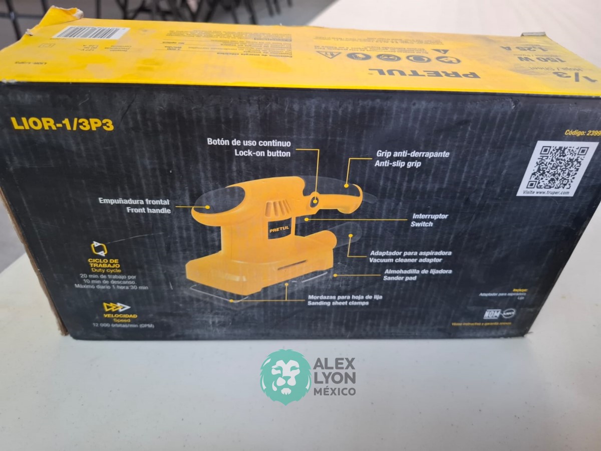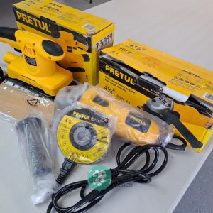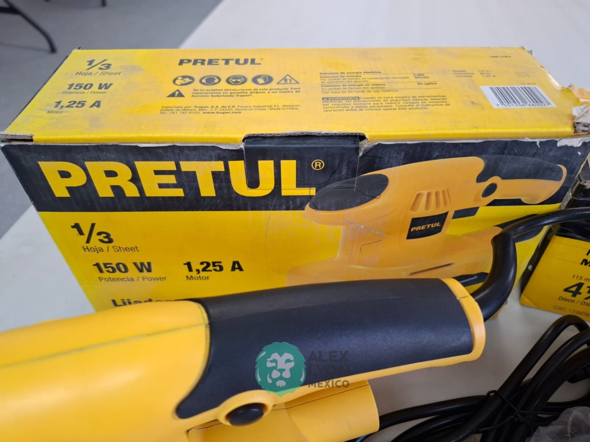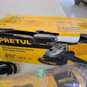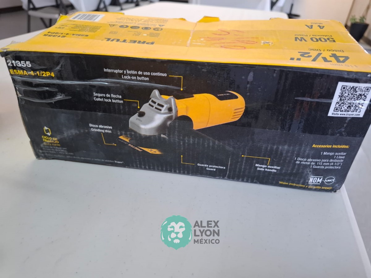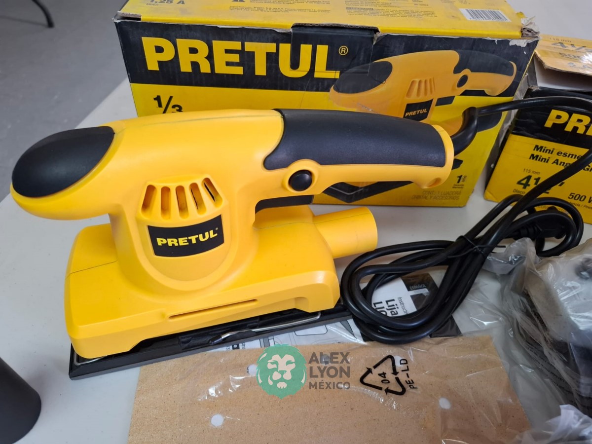 QUE INCLUYE (1) MINI ESMERILADORA ANGULAR, S/N: 21355, PARA DISCOS DE 4 1/2″, POTENCIA DE MOTOR DE 4 AMPS. 500 WATTS. 11000 RPM. 60 HZ. INTERRUPTOR Y BOTON DE USO CONTINUO, SEGURO DE FLECHA, MANGO AUXILIAR; (1) LIJADORA ORBITAL, S/N: 23999, HOJA DE 1/3″, ELECTRICA, 60 HZ. MOTOR DE 1.25 AMPS. 150 WATTS. BOTON DE USO CONTINUO, EMPUÑADORA FRONTAL, GRIP ANTI-DERRAPANTE, ADAPTADOR PARA ASPIRADORA, ALMOHADILLA DE LIJADORA, MORDAZAS PARA HOJA DE LIJA. (NUEVAS)