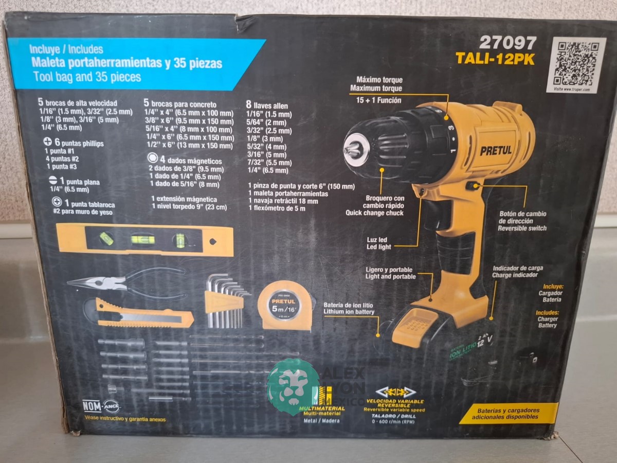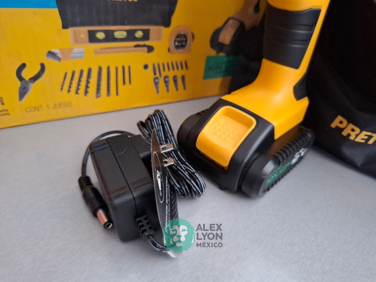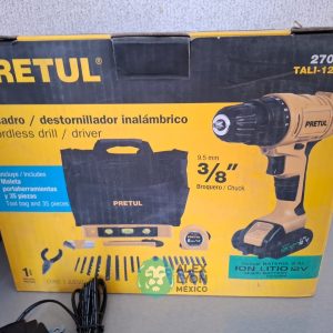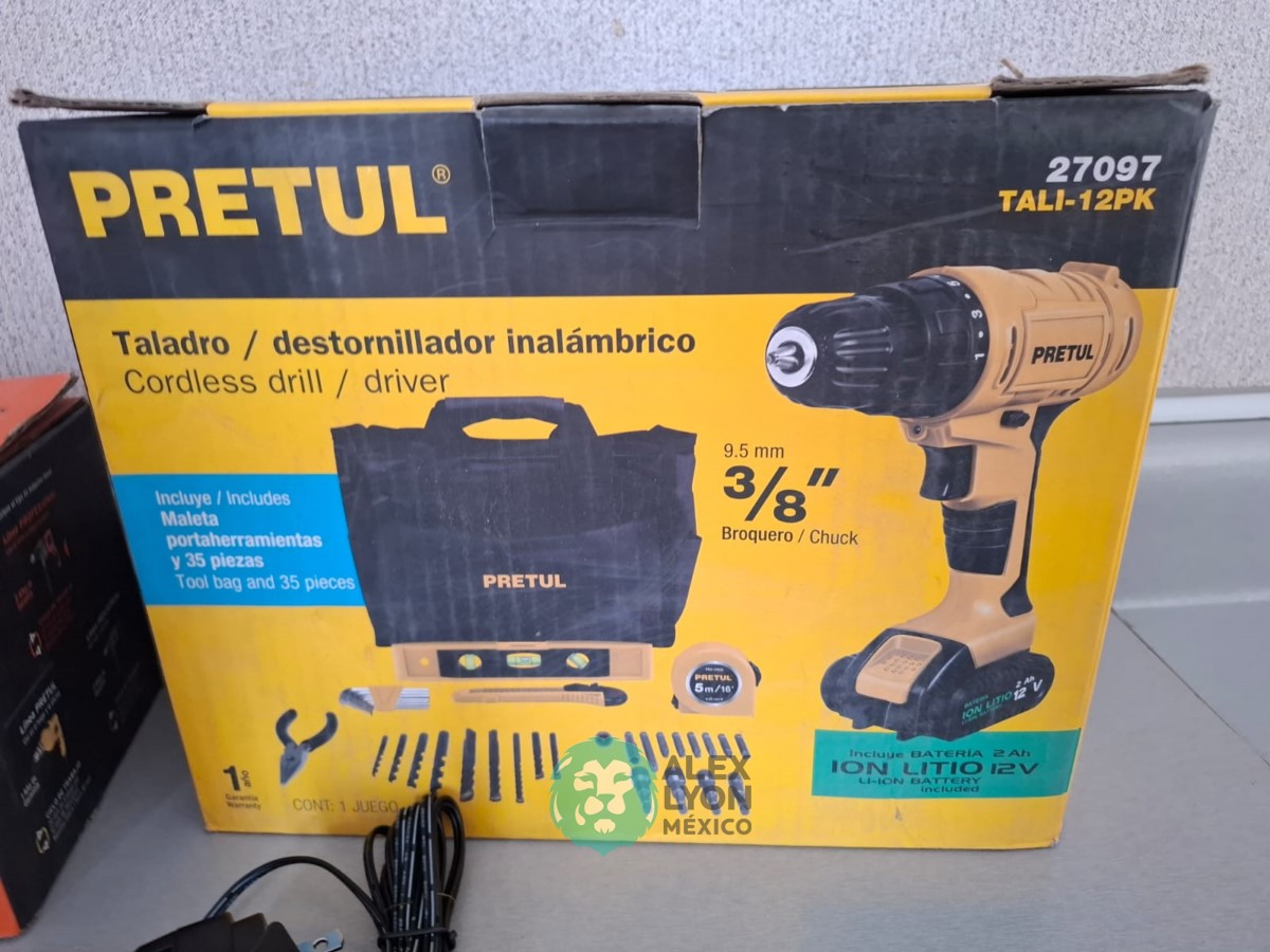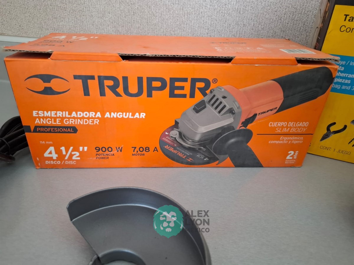 QUE INCLUYE (1) ESMERILADORA ANGULAR, MODELO ESMA-4-1/2A11, SERIE: 16715, PROFESIONAL, PARA DISCOS DE 4 1/2″, POTENCIA DE MOTOR 900 WATTS, MOTOR DE 7.08 AMPS. VELOCIDAD 11000 RPM. CUERPO DELGADO Y ERGONOMICO, GUARDA DE AJUSTE RAPIDO, MANGO DE 3 POSICIONES. (INCLUYE DISCO DE 4 1/2″, GUARDA DE PROTECCION, MANGO AUXILIAR Y LLAVE DE DOS PUNTAS) Y (1) TALADRO DESTORNILLADOR MARCA PRETUL, MODELO TALI-12PK, S/N: 27097, INALAMBRICO, BROQUERO CON CAMBIO RAPIDO DE 3/8″, LUZ LED, BOTON DE CAMBIO DE DIRECCION, INDICADOR DE CARGA. (INCLUYE CARGADOR DE BATERIAS, BATERIA DE ION-LITIO DE 12 VOLTS. BROCAS, PUNTAS, PINZA, LLAVES ALLEN, NIVEL, FLEXOMETRO Y MALETA PORTAHERRAMIENTAS) (NUEVAS)
