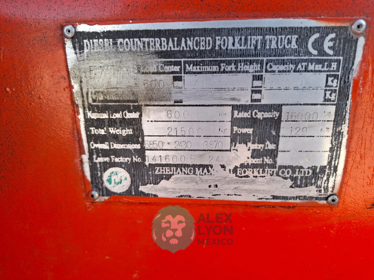 (V) CAP. 36000 LBS. TORRE 2 SECCIONES C/APERTURA HIDRAULICA DE HORQUILLAS, CABINA, CAMARA DE REVERSA, MOTOR 6 CIL. DIESEL, DOBLE RODADO, LLTS. 12.00-20.