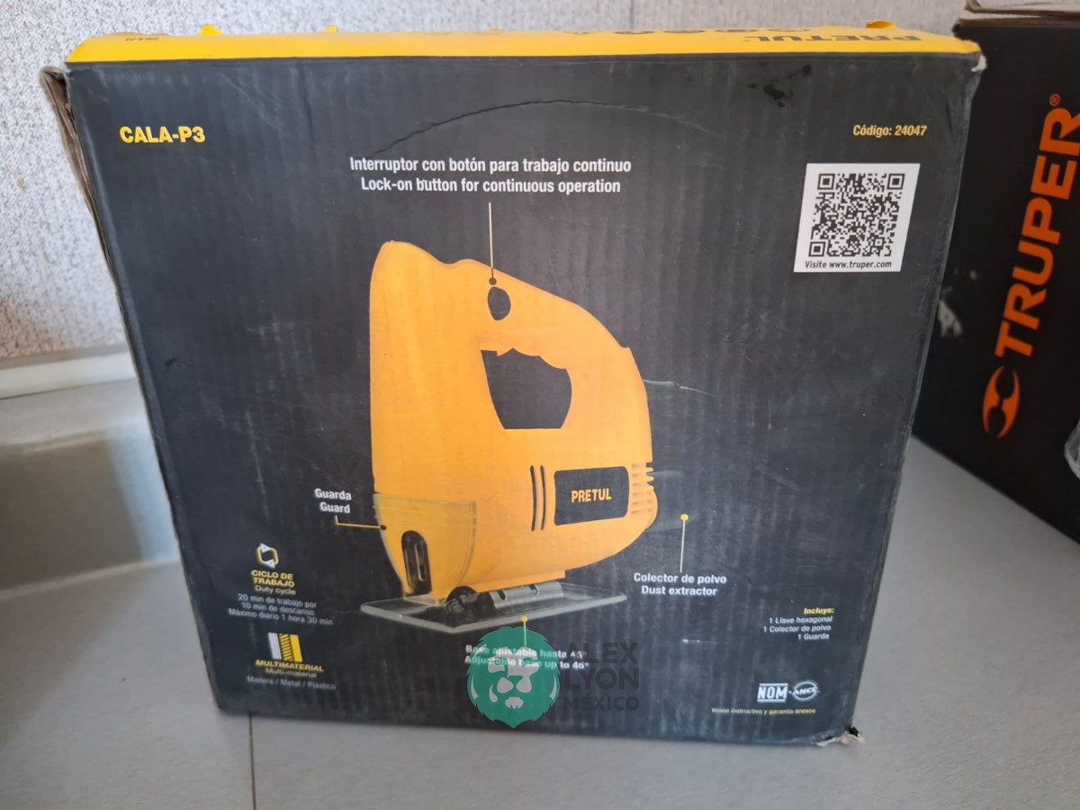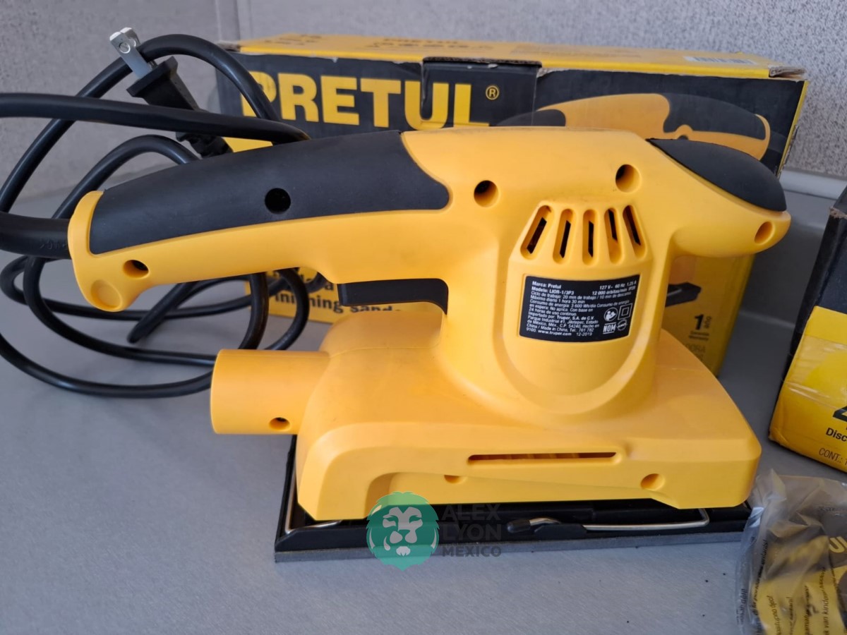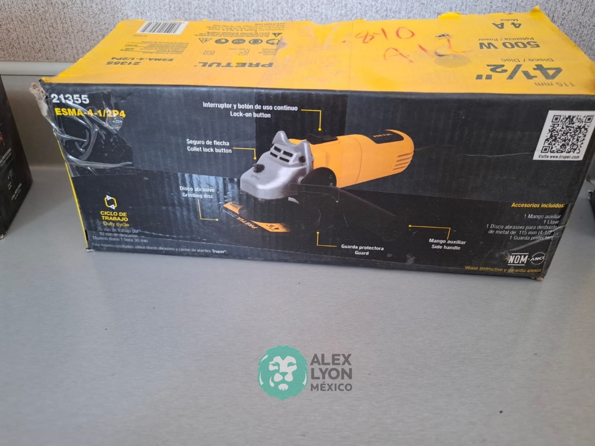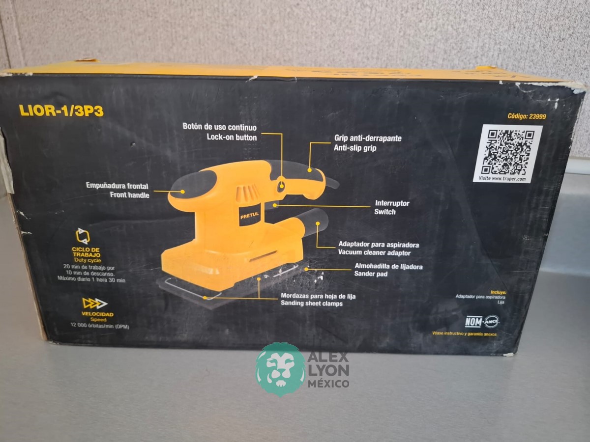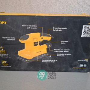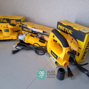 QUE INCLUYE (1) MINI ESMERILADORA ANGULAR, S/N: 21355, PARA DISCOS DE 4 1/2″, POTENCIA DE MOTOR DE 4 AMPS. 500 WATTS. 11000 RPM. 60 HZ. INTERRUPTOR Y BOTON DE USO CONTINUO, SEGURO DE FLECHA, MANGO AUXILIAR; (1) SIERRA CALADORA, S/N: 24047, MOTOR DE 3.1 AMPS. POTENCIA DE MOTOR DE 400 WATTS. VELOCIDAD 3000 RPM. INTERRUPTOR CON BOTON PARA TRABAJO CONTINUO, GUARDA PLASTICA, BASE AJUSTABLE HASTA 45 GRADOS, COLECTOR DE POLVO; (1) LIJADORA ORBITAL, S/N: 23999, HOJA DE 1/3″, ELECTRICA, 60 HZ. MOTOR DE 1.25 AMPS. 150 WATTS. BOTON DE USO CONTINUO, EMPUÑADORA FRONTAL, GRIP ANTI-DERRAPANTE, ADAPTADOR PARA ASPIRADORA, ALMOHADILLA DE LIJADORA, MORDAZAS PARA HOJA DE LIJA. (NUEVAS)