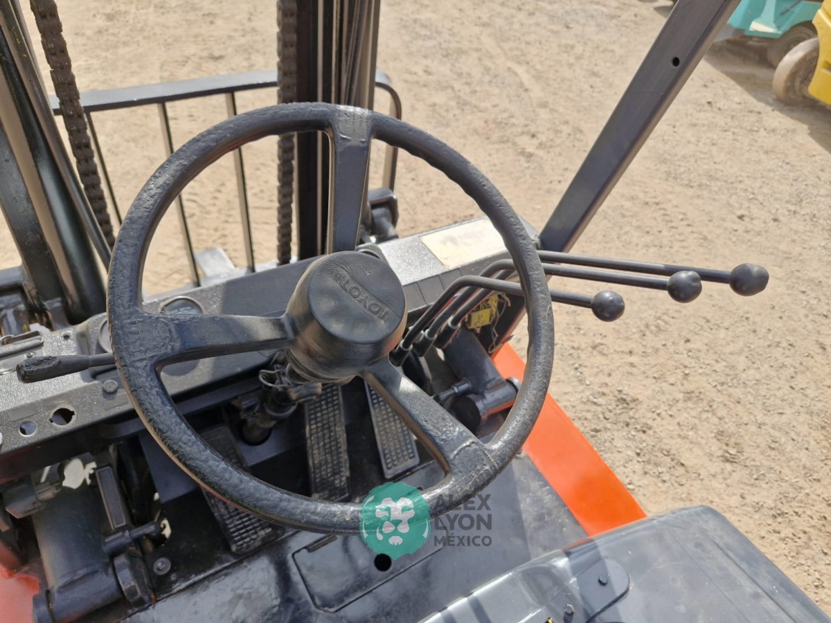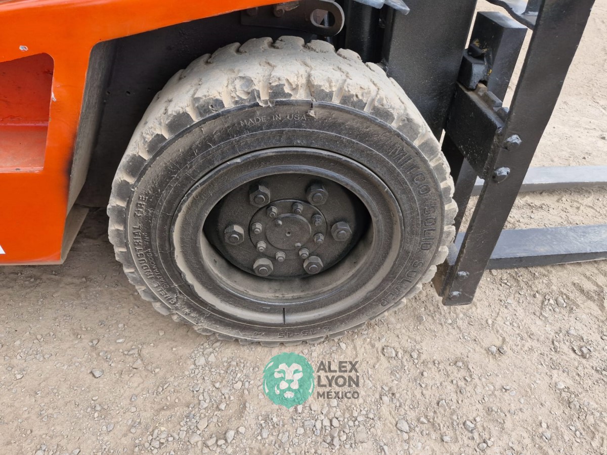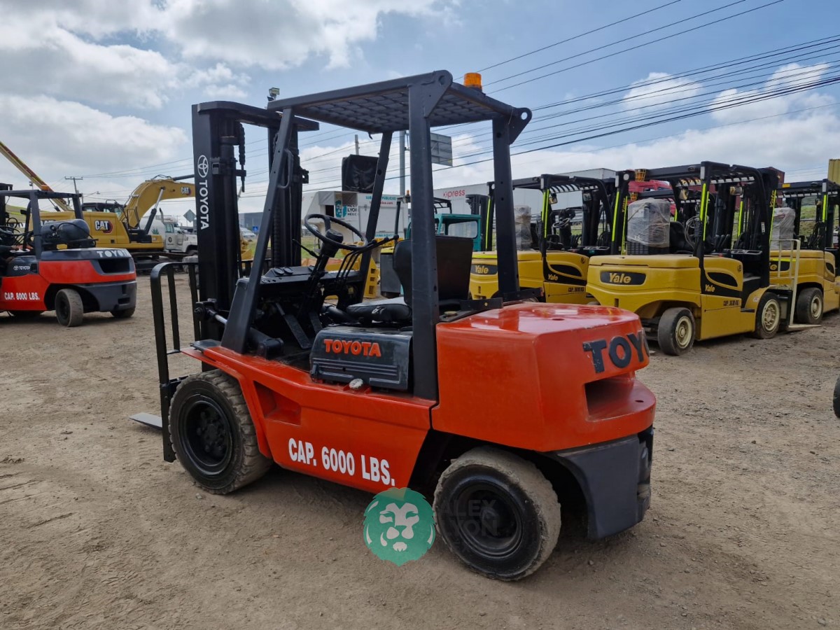 (VIDEO) CAP. 6000 LBS. TORRE DE 2 SECCIONES, CASETA, MOTOR TOYOTA 4 CIL. DIESEL, LLTS. SOLIDAS 8.15-15 Y 6.50-10. (NO FUNCIONA HOROMETRO)